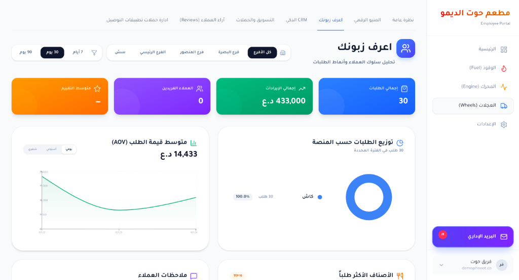 قلب التشغيل النابض. واجهة كاشير هي الأسرع في السوق، مصممة لاستقبال مئات الطلبات بالساعة دون تعليق، حتى بانقطاع الإنترنت.